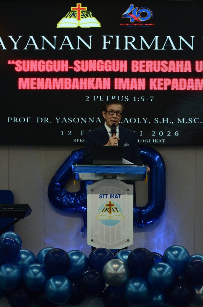 Acara yang diadakan di Kampus Biru Rempoa Raya Bintaro Jakarta Selatan, diawali ibadah syukur. Perayaan ini menjadi momentum refleksi atas perjalanan panjang STT IKAT dalam membentuk pemimpin gereja dan melayani masyarakat. Prof. Yasonna H. Laoly melalui kotbahnya menekankan bahwa STT IKAT telah menunjukkan karya nyata selama empat puluh tahun terakhir.